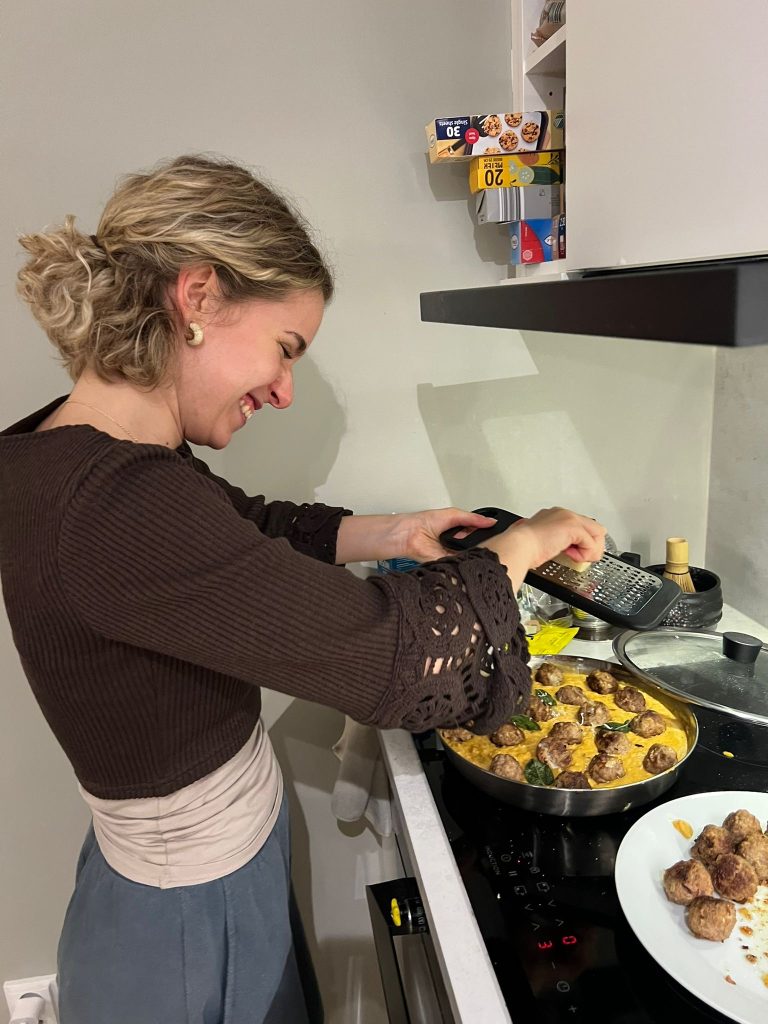 I find that cooking is a relaxing activity, and can make you feel more connected to home especially when making meals that remind you of home. What makes cooking even more fun is when you cook with friends. Cooking dinners with friends or hosting small cookouts brings people together, it can feel like a family sitting down to have dinner. It definitely can give a lot of comfort.