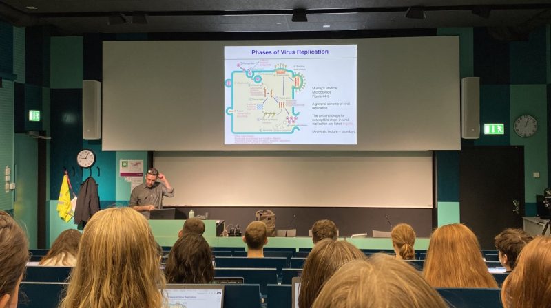 And this goes beyond simple course-related questions. I once reached out to both our program director and the organic chemistry professor if I could borrow lab equipment for decor for SNNC (the Students’ Nobel NightCap). And in a few weeks time I had a car pick up a bunch of lab equipment. Here he is our organic chemistry professor, Bernhard in the photo to the left!
